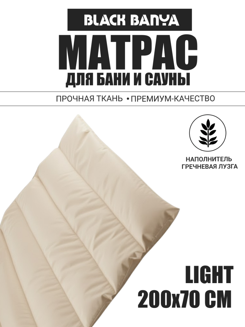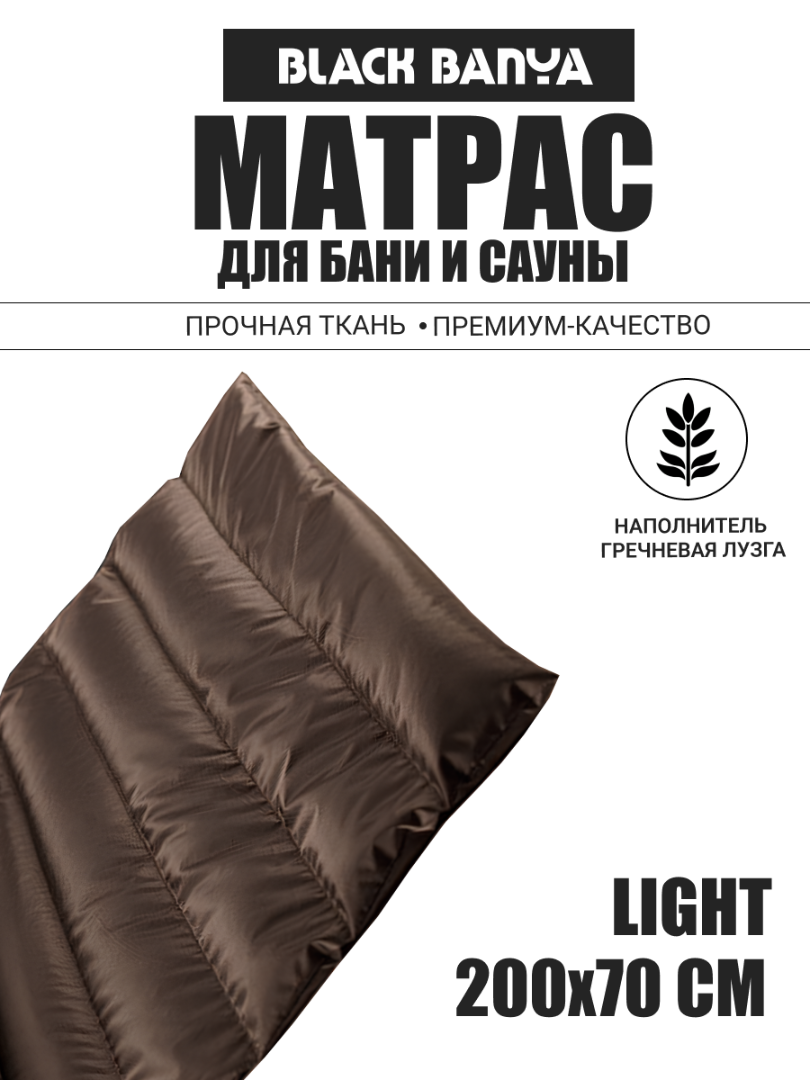 Скачать каталог BLACKBANYAНепромокаемый матрас для бани и сауны от Black Banya Light подарит совершенно новые ощущения от процесса парения, сделав его еще более комфортным, эффективным и полезным. Внутреннее наполнение гречишная лузга - это 100% экологичный материал, который отлично пропускает воздух и поддерживает комфортную температуру, не вызывает аллергических реакций и раздражения.Все без исключения пользователи выделяют следующие конкурентные преимущества наших изделий:Ортопедический эффект. Наполненный калиброванной гречишной лузгой банный матрас обеспечивает равномерное распределение нагрузки тела, поддерживает в удобном положении позвоночник и грудную клетку, благодаря чему позволяет мышцам качественно расслабиться.Польза для здоровья. Лузга гречихи обладает стимулирующим действием, отвечает за деликатный, но эффективный массаж наружных тканей, оперативное снятие мышечных болей, напряжения и скованности, полноценную циркуляцию крови и лимфы.Надежность и практичность. Влагостойкое покрытие не боится воздействия пара и конденсата, предотвращает от проникновения влаги внутрь за счет молнии с защитным клапаном. Можно не опасаться, что содержимое намокнет или со временем начнет преть, гнить или плесневеть.При этом он складной, благодаря чему не занимаем много места при хранении. Забудьте о твердых и неудобных деревянных лежаках, сенных одноразовых матрасах – закажите фирменный ортопедический матрас с лузгой гречихи от Black Banya Light по действительно доступной цене, без дополнительных наценок и переплат.