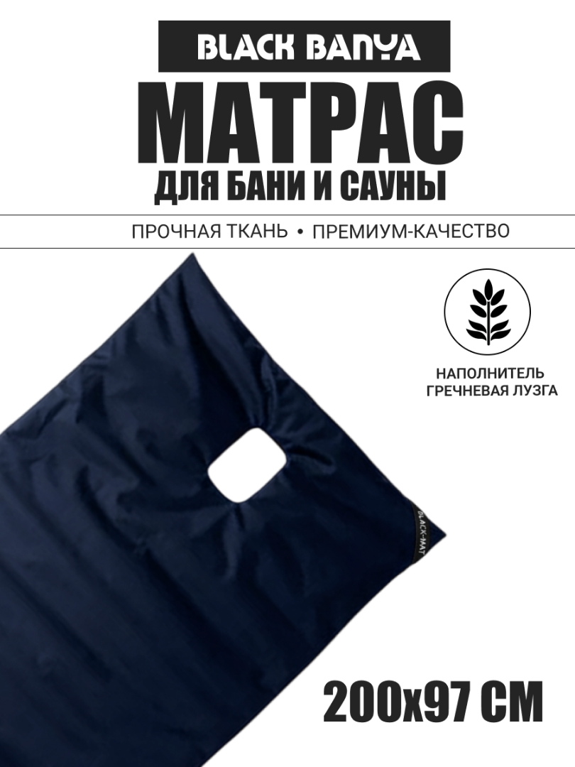 Авторский матрас для парения с отверстием под второе дыхание впервые изготовлен компанией Black Banya. Эксклюзивный матрас для бани и сауны от Black Banya подарит совершенно новые ощущения от процесса парения, сделав его еще более комфортным, эффективным и полезным. Внутреннее наполнение гречишная лузга - это 100% экологичный материал, который отлично пропускает воздух и поддерживает комфортную температуру, не вызывает аллергических реакций и раздражения.